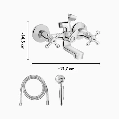 Du möchtest ein Badezimmer im Landhausstil? Dann wird dir die baliv Wannenarmatur WA-5040 im Retro-Design bestimmt genauso gut gefallen wie deiner Familie. Die Kreuzgriffe fallen dabei sofort ins Auge. Mit ihnen kannst du nicht nur Kalt- und HeiĂwasser separat regulieren, sie sind auch mit einer nostalgisch verschnörkelten Schrift entsprechend gekennzeichnet. Die Handbrause mit ihrem glockenförmigen Brausekopf und ihrem stilvollen Handgriff runden das charmante Vintage-Design perfekt ab. Dank des Umstellers entscheidest du im Handumdrehen, ob du lieber mit einer Dusche oder einem Bad den Tag ausklingen lassen möchtest. Warum nicht passend zum Landhausflair ganz romantisch im Kerzenschein?