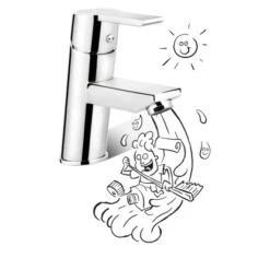 Mit der Waschtischarmatur WT-350 startest du schwungvoll in den Tag: Die Armatur ist leicht nach vorn geneigt, was sie super dynamisch aussehen lĂ€sst. Ein schöner Kontrast ist der runde Korpus zusammen mit der kantigen Form von Hebel und Auslauf. Die Kartusche dieser Armatur verfĂŒgt ĂŒber einen Widerstand. Er hĂ€lt dich automatisch davon ab, das Wasser voll aufzudrehen, wenn es gar nicht nötig ist. So sparst du einfach Wasser! Beim Ăffnen merkst du genau, an welchem Punkt du den Widerstand ĂŒberwindest und die volle Wassermenge durch den Hahn sprudelt.