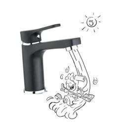 Die attraktive baliv Waschtischarmatur WT-5760 ist mit ihrem abgerundeten Design ein echter Hingucker in deiner WohlfĂŒhloase. Durch ihren Look in Matt-Schwarz mit verchromt abgesetzten Elementen verleiht sie deinem Bad das besondere Etwas. Sie sieht aber nicht nur klasse aus, sondern ist auch ein bewĂ€hrter Helfer in deinem Alltag. Bei dieser Armatur öffnest und schlieĂt du den Verschlussstopfen ganz einfach per Fingerdruck. Die Ablaufgarnitur hat nĂ€mlich ein praktisches Pop-up Ventil. Damit geht dir auch das Reinigen der Armatur leicht von der Hand, da sich kein störender SchmutzfĂ€nger hinter ihr befindet.