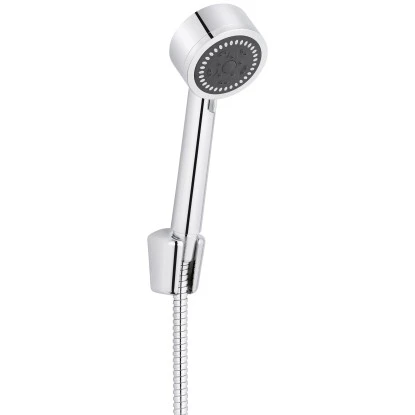 Das Brause-Set Bamio besteht aus einer verchromten Handbrause mit 5 Strahlarten und mit praktischen Anti-Kalknoppen die lästige Ablagerungen verhindern. Das Set beinhaltet eine Wandhalterung und einen 150 cm lange Brauseschlauch aus Metall, der für Anschlüsse mit 18,6 mm (G 1/2) geeignet ist.