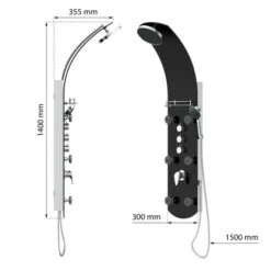 Eisl Duschpaneel Karibik 3 In 1 mit Regendusche Sechs Massagedüsen Schwarz. Exklusives Duschsystem aus schwarzem Sicherheitsglas – Eyecatcher in jedem Bad
