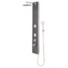 Das Eisl Duschpaneel Vital verfügt über eine Kopfbrause, eine Handbrause, sechs Rückendüsen und einen Wanneneinlauf. Es besteht aus schickem Edelstahl mit verchromten Dusch-Armaturen und Düsen.