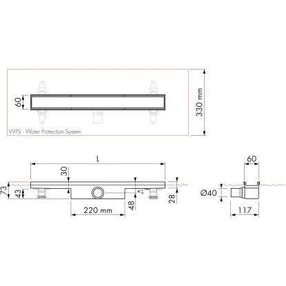 Die Duschrinne ist mit einer befliesbaren Abdeckung ausgestattet. So kann sie mit Ihrer Wunschfliese installiert werden. (Achtung: Fliese ist nicht im Lieferumfang enthalten.)