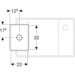 – Innenbecken: Breite: 22 cm, Höhe: 19,5 cm, Tiefe: 32 cm