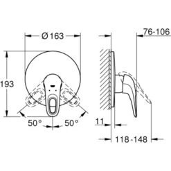 Mit dem Schnellmontagesystem installieren Sie die Armatur im Handumdrehen. Die Befestigung ist verdeckt. Die Brausearmatur besitzt ein Fertigmontageset (ohne Unterputz-Einbaukörper).