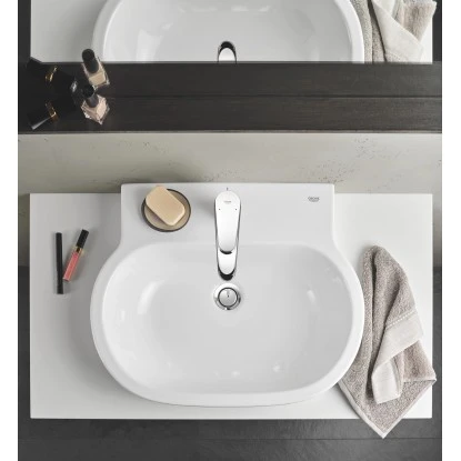 Die Grohe Einhand-Waschtischbatterie Eurodisc Cosmopolitan M-Size ist mit einer verdeckt angebrachten Zugstange und Grohe EcoJoy ausgestattet, dem Durchflussbegrenzer, der den Wasserverbrauch um bis zu 50 % reduziert.