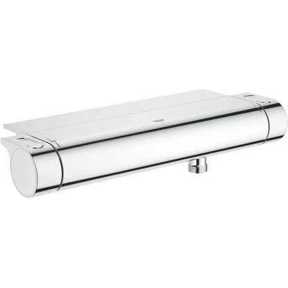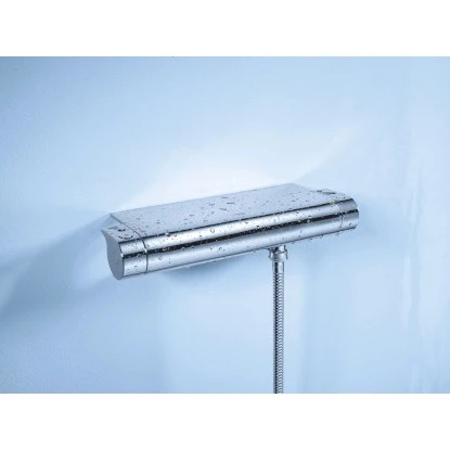 Diese Brausebatterie verbindet die Funktion thermostatisch abgesicherten Duschens mit Ă€sthetischem Design. Die Bedienelemente sind angenehm handlich und intuitiv zu regeln. Zum Schutz Ihrer empfindsamen Haut werden durch die Grohe CoolTouch Technologie ein Aufheizen der ArmaturenoberflĂ€che und durch die SafeStop Taste ein versehentliches Einstellen zu heiĂer Wassertemperaturen verhindert. Die Grohe EasyReach Ablage auf der Armatur ist nicht nur formschön und leicht zu reinigen, sie hĂ€lt Ihre Pflegeprodukte fĂŒr Sie immer griffbereit. Dass Sie mit diesem Thermostat auch noch den Wasserverbrauch bei voller Leistung um bis zu 50 % zu reduzieren können, macht Duschen zu einem rundum unbeschwerten VergnĂŒgen.