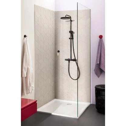GenieĂen Sie mit dem Grohe QuickFix Duschsystem Vitalio Start System 250 die groĂe Bewegungsfreiheit in der Dusche, die verschiedenen angenehmen Strahlarten und den Komfort, den ein Thermostat bietet. Das Aufputz-System fĂŒr die Wandmontage besteht aus einer Vitalio Start 250 Kopfbrause, einer Vitalio Start 100 Handbrause, einem Thermostat, einer Brausestange mit einem 390 mm langen schwenkbaren Brausearm und einem Gleitelement zum Einstellen der Handbrause sowie einem 1.750 mm langen VitalioFlex Comfort TwistStop Schlauch. Die 250 mm groĂe Kopfbrause bietet einen sanften, entspannenden Rain Strahl. In der 100 mm groĂen Handbrause ist ein ShockProof Silikonring integriert, der sie vor BeschĂ€digungen durch Herunterfallen oder StöĂe schĂŒtzt. Die Handbrause bietet 2 Strahlarten: den sanften Rain Strahl und den kraftvollen, gezielten Jet Strahl. Beide Brausen verfĂŒgen ĂŒber die Grohe Wasserspartechnologie. Durch sie wird der Wasserfluss auf 9,5 l/Min. fĂŒr die Kopfbrause und auf 5,7 l/Min. fĂŒr die Handbrause begrenzt. So reduzieren sie den Wasserverbrauch, ohne an Leistung einzubĂŒĂen. Die Grohe DreamSpray Technologie sorgt dafĂŒr, dass der Wasserfluss aus jeder DĂŒse perfekt dosiert ist, um Ihr Duscherlebnis so komfortabel und angenehm wie möglich zu machen. Die SpeedClean DĂŒsen lassen sich durch einfaches Abwischen von Kalkablagerungen befreien. Dank der Grohe TurboStat Technologie garantiert das Duschsystem eine konstante Wassertemperatur ohne böse Ăberraschungen. Zum Schutz vor VerbrĂŒhungen ist der Grohe SafeStop Temperaturbegrenzer auf 38 °C eingestellt, damit Kinder nicht versehentlich eine zu hohe Wassertemperatur einstellen. FĂŒr noch mehr Sicherheit kann der Grenzwert mit dem Grohe SafeStop Plus Temperaturbegrenzer auch auf 43 °C eingestellt werden. Zwischen Kopf- und Handbrause wechseln und die Wassermenge anpassen – dank der AquaDimmer Funktion geht das alles mit nur einem Griff. Dank der langlebigen, pflegeleichten Grohe Long-Life Shine Beschichtung glĂ€nzt das Duschsystem viele Jahre lang makellos. Noch mehr Komfort und Platz bietet die optionale Grohe EasyReach Ablage. Damit haben Sie Duschgel und Shampoo immer griffbereit. Separat erhĂ€ltlich.