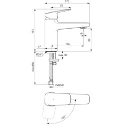 Ideal Standard Waschtischarmatur Ceraplan H90 BlueStart O. Ablaufg Schwarz Matt