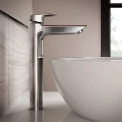 Die Ideal Standard Waschtischarmatur Tesi überzeugt neben der Optik durch seine gute Ergonomie. Diese Armatur mit verlängertem Sockel verfügt über keine Ablaufgarnitur.