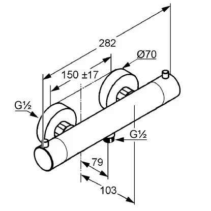 Die Brausearmatur ist in einer edlen Chrom-Optik gehalten und ist eigensicher gegen Rückfließen. Das Thermostat ist mit einem Schmutzfangsieb ausgestattet und hat ein Brauseabgang-Maß von 1/2″.