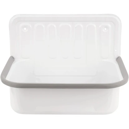 Das praktische Sanitop-Wingenroth Ausgussbecken ist aus glasierterem Stahl in schickem Weiß mit grauem Rand. Es ist ideal für den Einsatz in der Waschküche, dem Keller oder der Garage. Zudem ist es sehr robust, da es resistent gegen Hitze und Kälte ist.