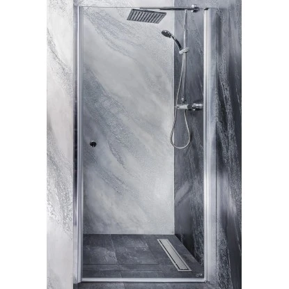 Bei der Schwingtür Brava handelt es sich um ein großes Glaselement, das einen nahezu makellosen Eindruck vermittelt. Die Scharniere und der Türgriff sind in Chromoptik gehalten und stellen damit eine elegante Akzentuierung dar. Auch bei Nichtbenutzung ist die Dusche kein Platzverschwender, sondern wertet Ihr Badezimmer stilvoll auf.