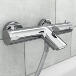 London Thermostat Wannenfüllarmatur Chrom. Die Badezimmer Armatur verfügt über ein in Europa hergestelltes Thermostat und steht für Qualität und Langlebigkeit.