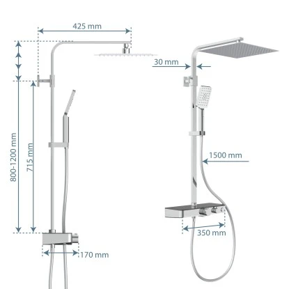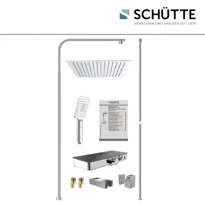 Das elegante und hochwertige Schütte Überkopf-Brauseset Ocean bringt Ihnen ein unvergessliches Duscherlebnis und lädt ein zum Relaxen und Wohlfühlen. Entspannen Sie nach einem stressigen Tag mit einer langen und ausgiebigen Dusche. Die Duschsäule aus Edelstahl im Eckprofil verfügt über ein höhenverstellbares Steigrohr. Die großformatige, sehr flache Edelstahl-Kopfbrause und die Design-Handbrause mit 3 Strahlvarianten sorgen für pure Entspannung. Mit dem integrierten Umstellventil können Sie ganz einfach zwischen der Kopf- und der Handbrause wechseln. Auf der praktischen Ablage haben Sie zudem Platz für Ihre Dusch- und Badutensilien. Dies stellt besonders für Duschbereiche mit geringem Platzangebot einen tollen Mehrwert dar. Die integrierte Thermostatarmatur sorgt für eine gleichmäßige und komfortable Temperaturregulierung und minimiert das Risiko für Verbrühungen dank der integrierten Sicherheitssperre bei 38 °C. Für eine schnelle und leichte Reinigung sind sowohl die Hand- als auch die Kopfbrause mit Antikalknoppen ausgestattet. Kalkrückstände haben hier keine Chance und können einfach mit dem Finger entfernt werden. Die mitgelieferte Wasserspardichtung ermöglicht bis zu 50 % Wasserersparnis. Der Brauseschlauch aus Edelstahl verfügt über einen Standard G 1/2 Anschluss. Dank strenger Qualitätskontrollen und hochwertigen Materialien wird eine hohe Sicherheit und beste Wasserqualität garantiert.