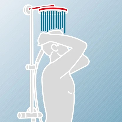 Unangenehme Ăberraschungen durch zu heiĂes oder kaltes Wasser sind nicht zu befĂŒrchten. Das Thermostat gleicht Temperaturschwankungen aus.