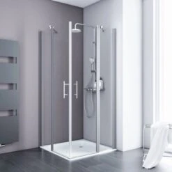 Die Schulte Duschkabine mit Eckeinstieg Alexa Style 2.0 verleiht jedem Raum eine besondere AtmosphÀre. Insgesamt vier klare Echtglaselemente (ESG), von denen zwei feststehend sind, lassen jeden Raum gerÀumiger wirken.