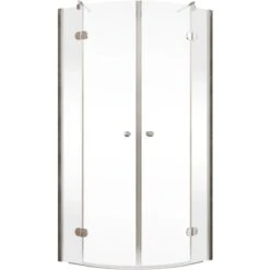 Die vierteilige Runddusche der Serie MasterClass von Schulte überzeugt mit vier großflächigen Echtglasscheiben (ESG), von denen zwei feststehend sind und zwei als Drehtüren fungieren. Die beiden großflächigen Türen sind mit hochwertigen Scharnieren aus Aluminium an diesen Seitenteilen befestigt. So entsteht ein großzügiger Einstieg in die Runddusche.